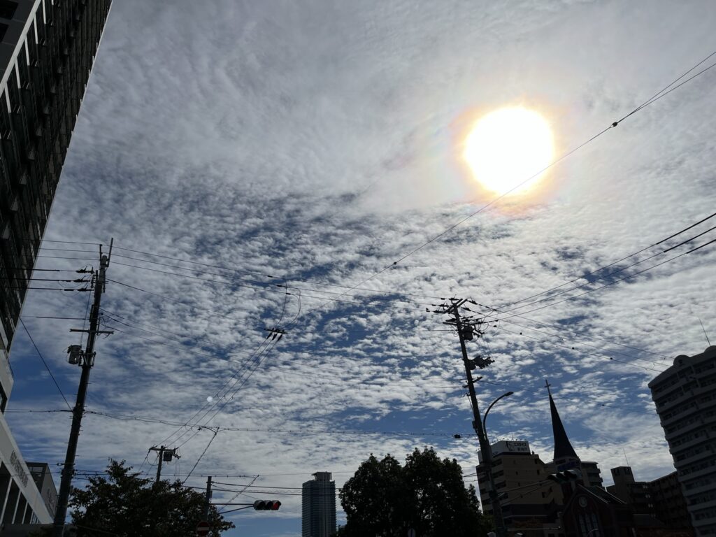 👆鱗雲に輝く太陽の迫力よ。連休はずっと天気が良くてよかった。