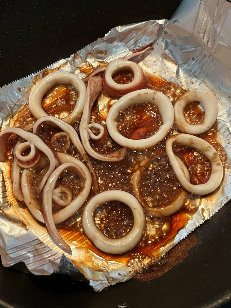 👆イカを醤油で焼く